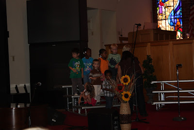 Luke's first school performance was today, and he did such an amazing job! He sang the songs and did the hand motions, and was so cute :) The preschool does a great job for Grandparents' Day, and Grandma and Grandpa Clark were ablet o make it this year.